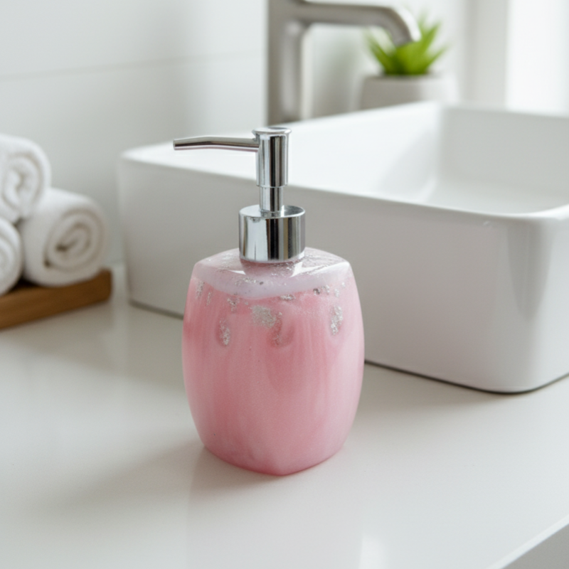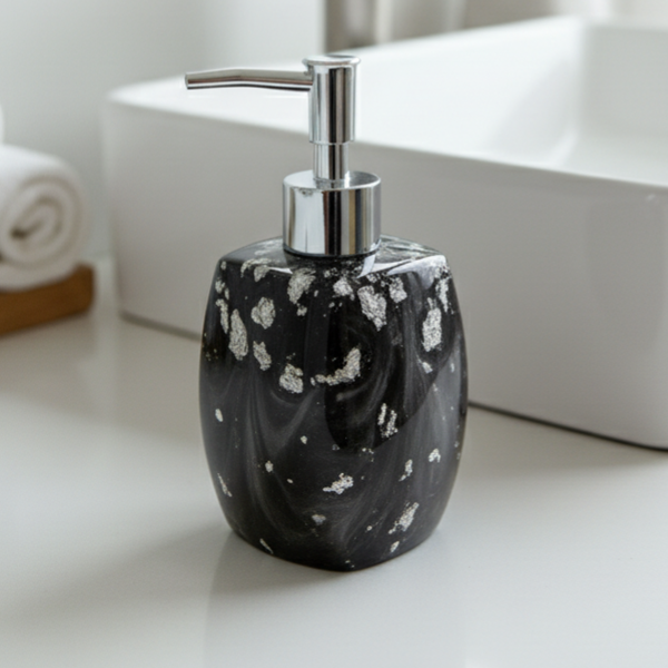 Der Seifenspender Chleoluxery ist ein wahres Meisterwerk des Handwerks und zieht sofort alle Blicke im Badezimmer auf sich. Jeder dieser Seifenspender ist einzigartig und wird mit größter Sorgfalt und Liebe zum Detail handgefertigt, was ihn zu einem echten Unikat macht. Die exklusive Verarbeitung und das außergewöhnliche Design von Chleoluxery heben ihn weit über gewöhnliche Seifenspender hinaus. Er ist nicht nur ein funktionales Accessoire, sondern auch ein stilvoller Hingucker, der jedem Badezimmer eine besondere Note verleiht. Ob durch seine harmonischen Farben oder seine kunstvolle Form - der Seifenspender Chleoluxery überzeugt auf ganzer Linie und verwandelt den Alltag in ein luxuriöses Erlebnis.