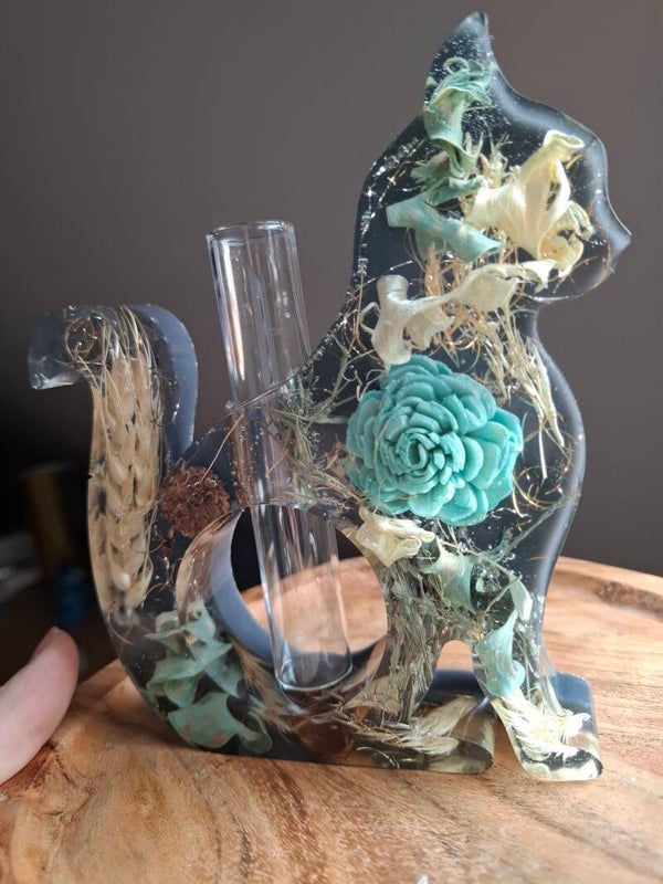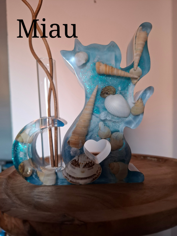 Diese handgefertigten Katzenvasen aus hochwertigem Epoxidharz sind ein einzigartiges Unikat.