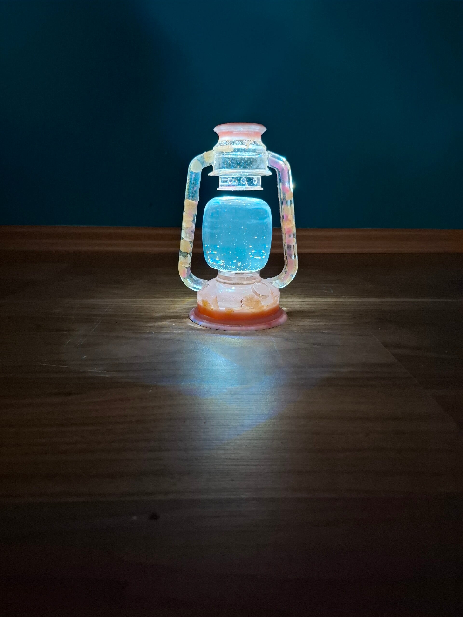 Die schöne Beleuchtung schafft eine warme, einladende Atmosphäre und macht die Lampe zu einem echten Blickfang in jedem Raum.