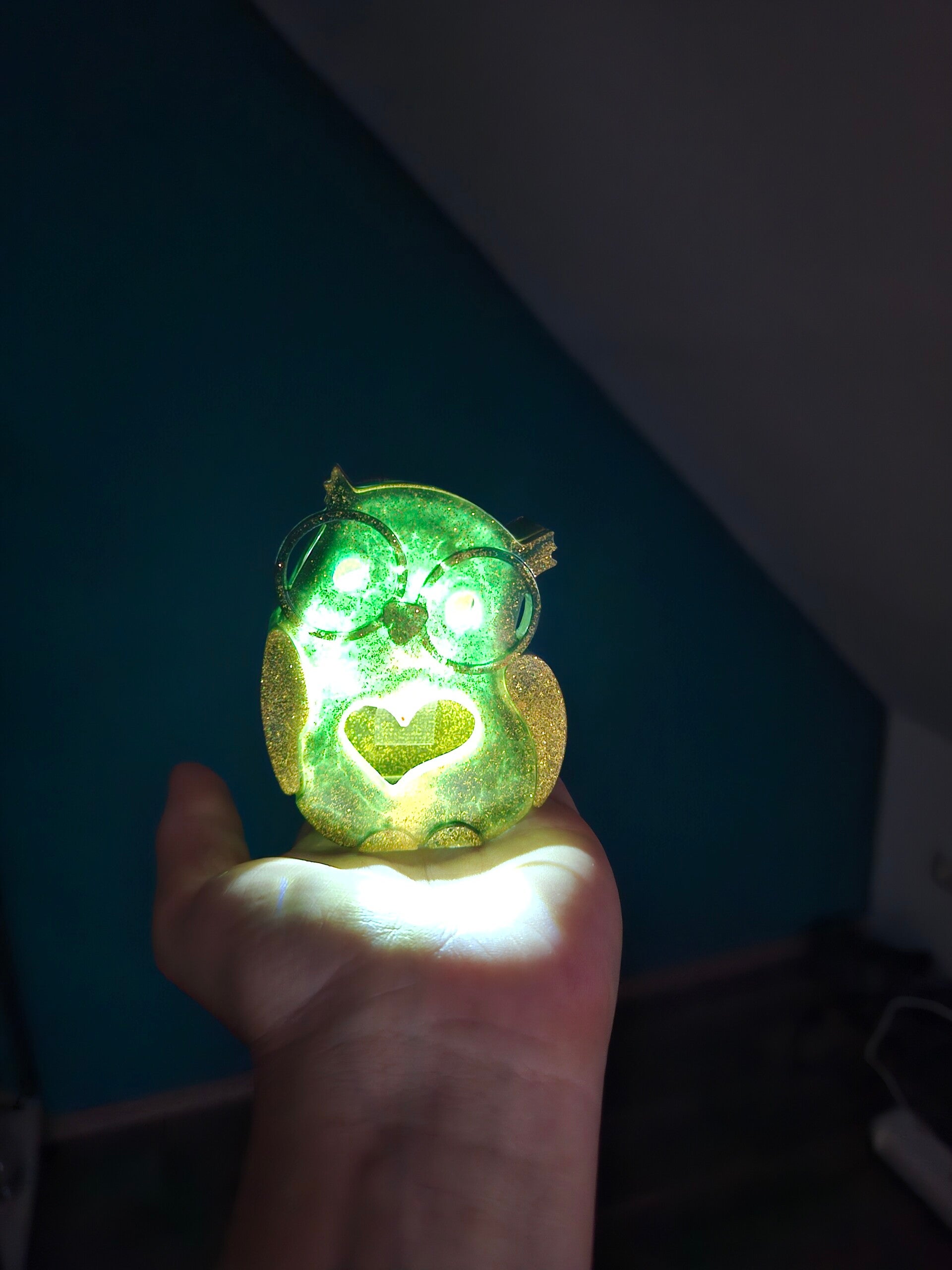 Entdecken Sie unsere charmante Eule Hildegard, liebevoll handgefertigt aus hochwertigem Resin. Mit ihren Maßen von 9 x 7 cm ist sie die perfekte kleine Dekoration für Ihr Zuhause oder als besonderes Geschenk. Das integrierte Ballonlicht verleiht ihr eine warme, gemütliche Atmosphäre und sorgt für einen bezaubernden Blickfang, egal ob tagsüber oder bei Kerzenschein am Abend.
