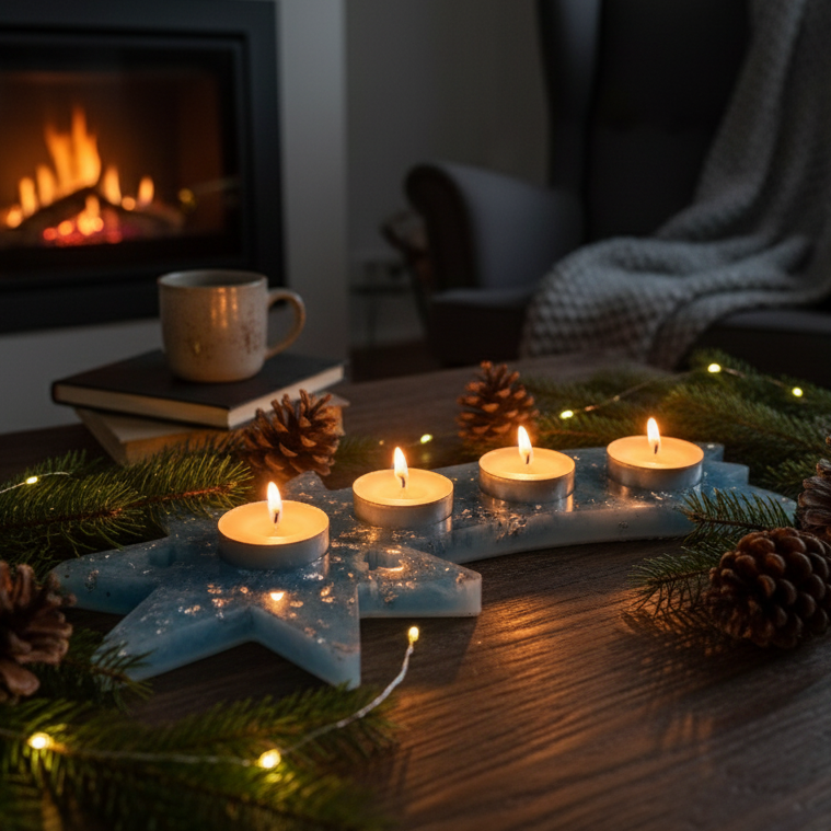 Individuell & einzigartig: Dieser Adventskranz aus Resin bietet Platz für 4 Teelichter (inklusive) und bringt funkelnden Glanz in die Adventszeit. Jeder Kranz ist handgemacht und kann auf Wunsch in deiner Lieblingsfarbe gestaltet werden.