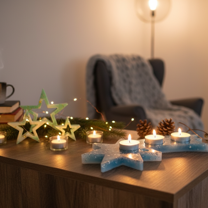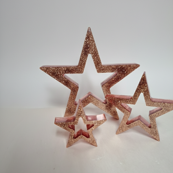Diese drei glänzenden Resin-Sterne bringen festliche Stimmung in dein Zuhause. Jedes Stück wird liebevoll von Hand gefertigt und ist ein echtes Unikat.