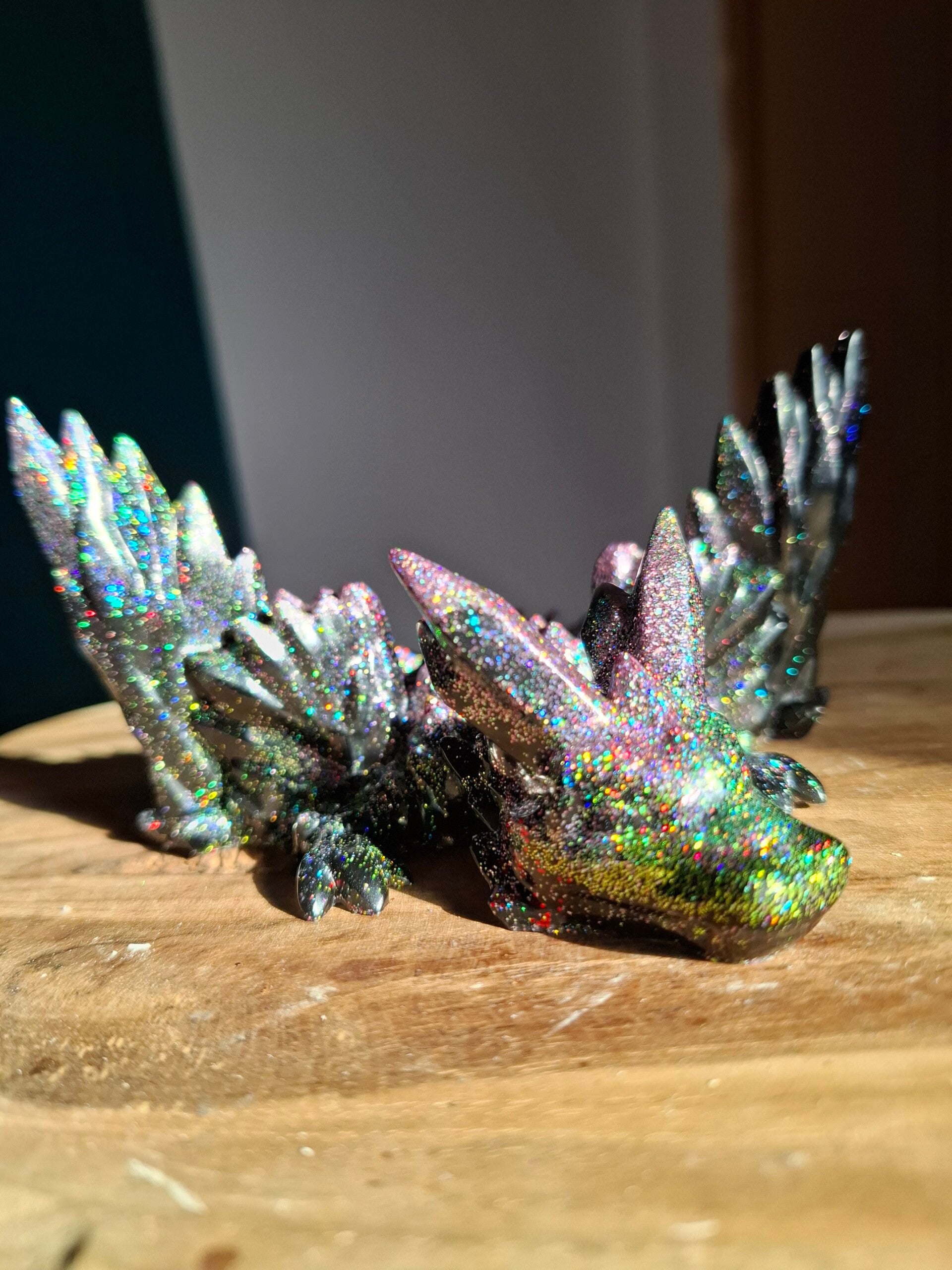Liegender Drache aus Resin – handgemacht, individuell gestaltbar und ein beeindruckendes Fantasy-Geschenk. Edle Dekoration für Zuhause, Büro oder Sammlerecken mit persönlicher Note.
