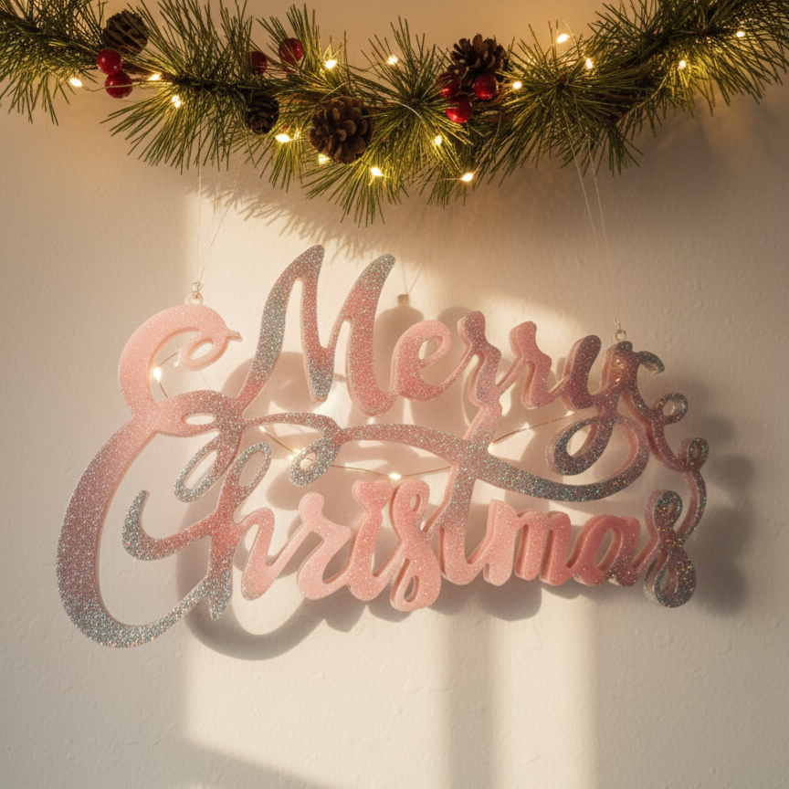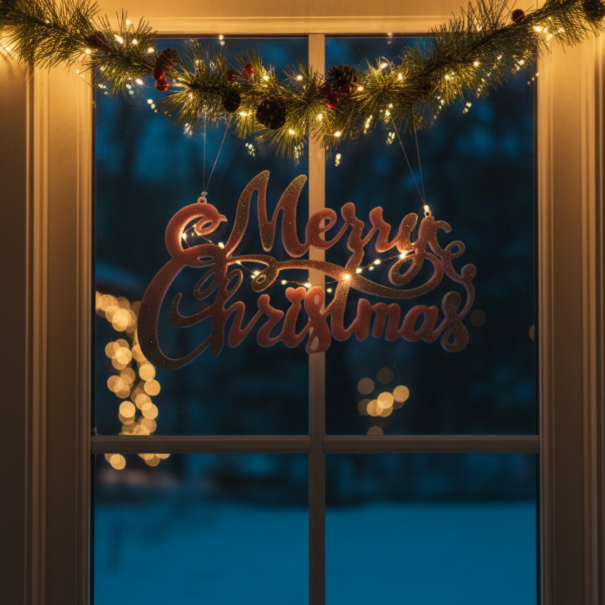 Zum Hängen: Nutzen Sie die vorbereiteten Befestigungen, um es an Türen, Wänden oder Fenstern als herzlichen Weihnachtsgruß anzubringen.