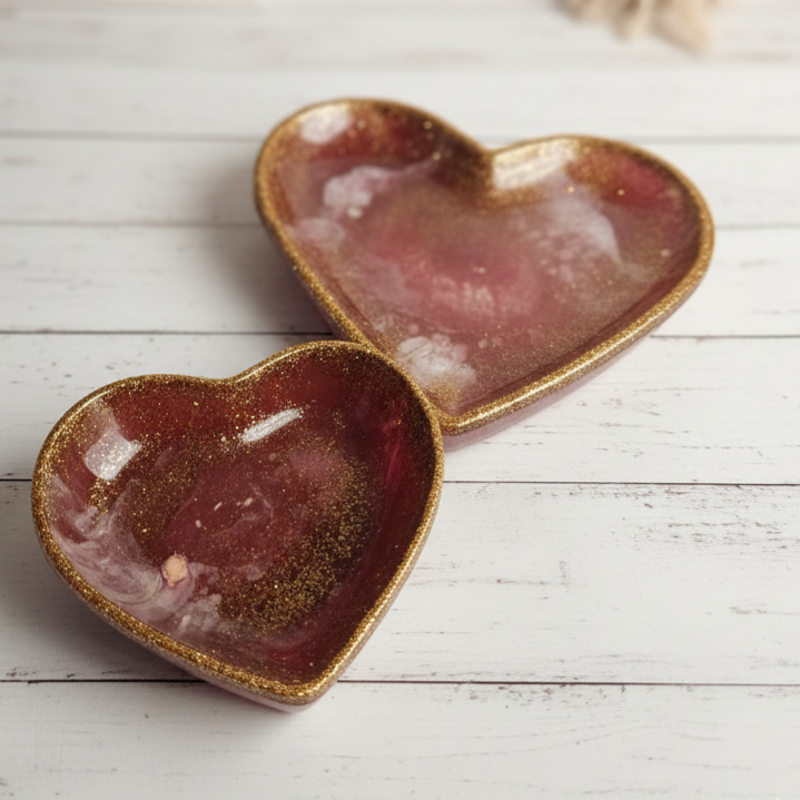 Diese Herzschalen im 2er Set aus Epoxidharz sind ideal zur Aufbewahrung von Schmuck oder kleinen Gegenständen.
