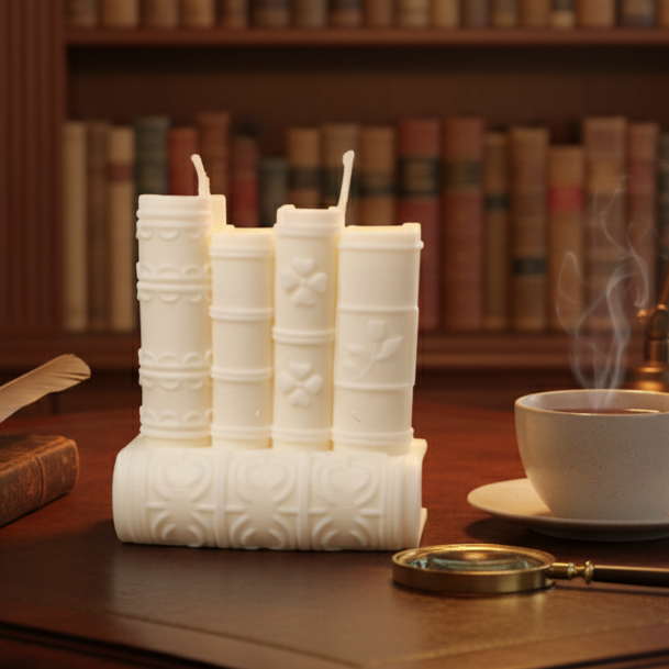 Diese große, handgemachte Buchkerze ist das ultimative Statement-Piece für alle Leseratten und Buchliebhaber. Sie bringt nicht nur gemütliches Licht, sondern auch deine Leidenschaft für Bücher als stilvolles Deko-Element zum Ausdruck.
