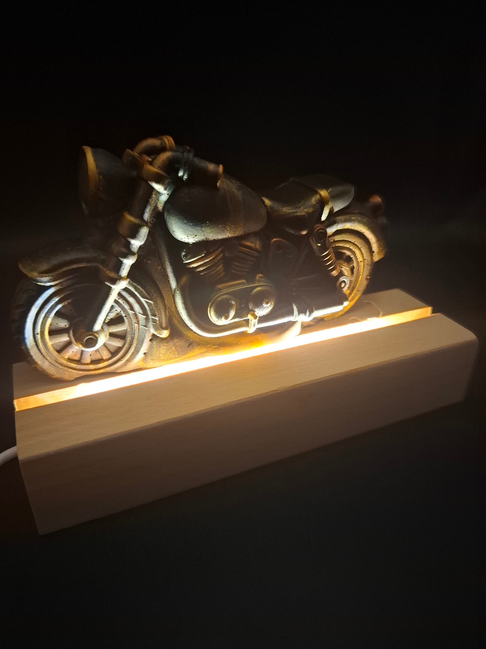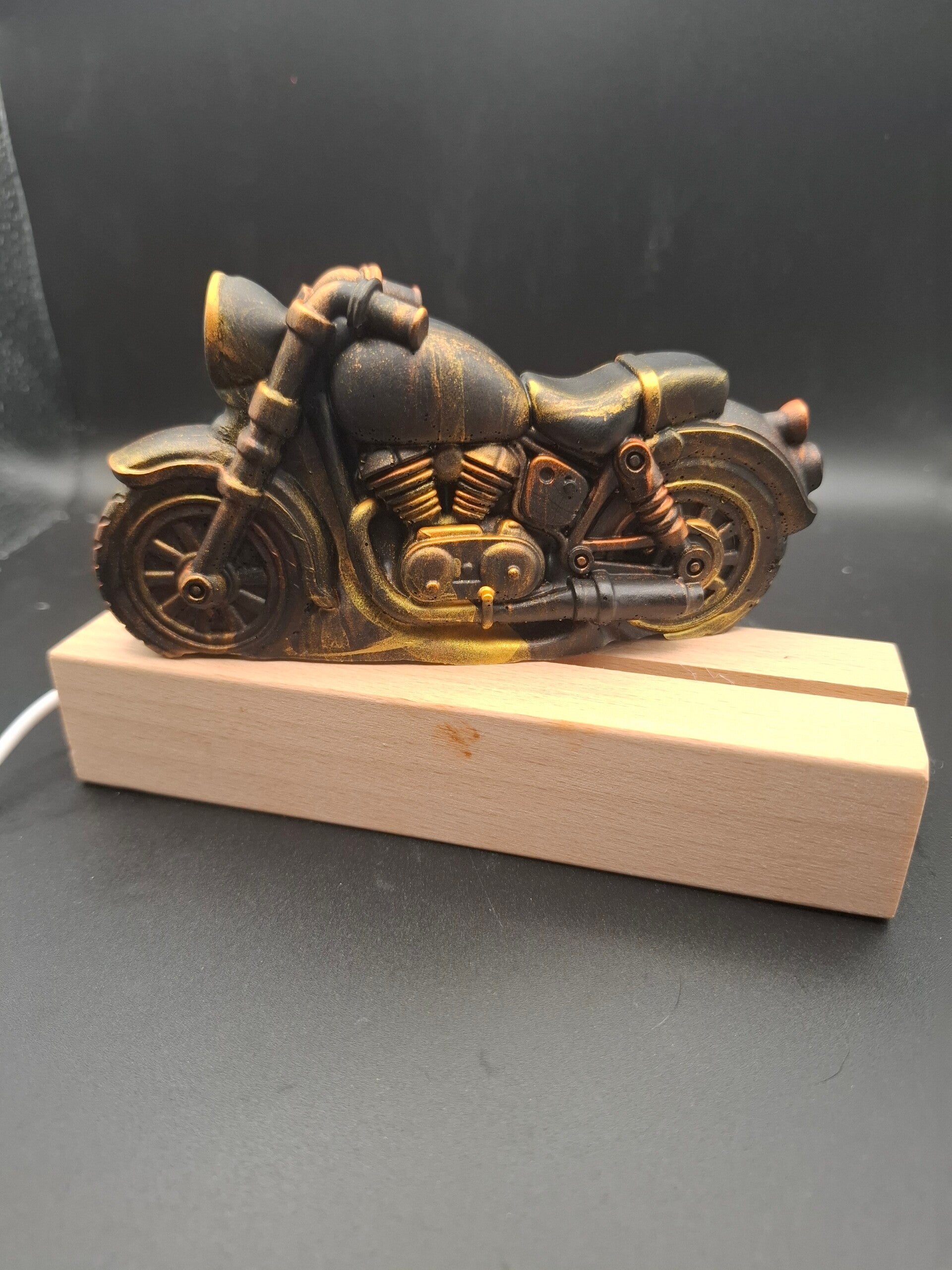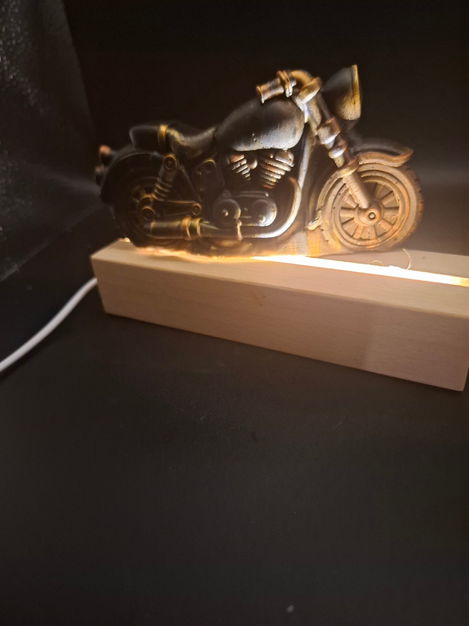 Dieses Motorrad aus Epoxidharz bietet ein individuelles Design. Es kann mit oder ohne Lichtersockel personalisiert werden. Perfekt für einzigartige Dekorationen. Ideal fürjenige, die ein besonderes Motorrad suchen.